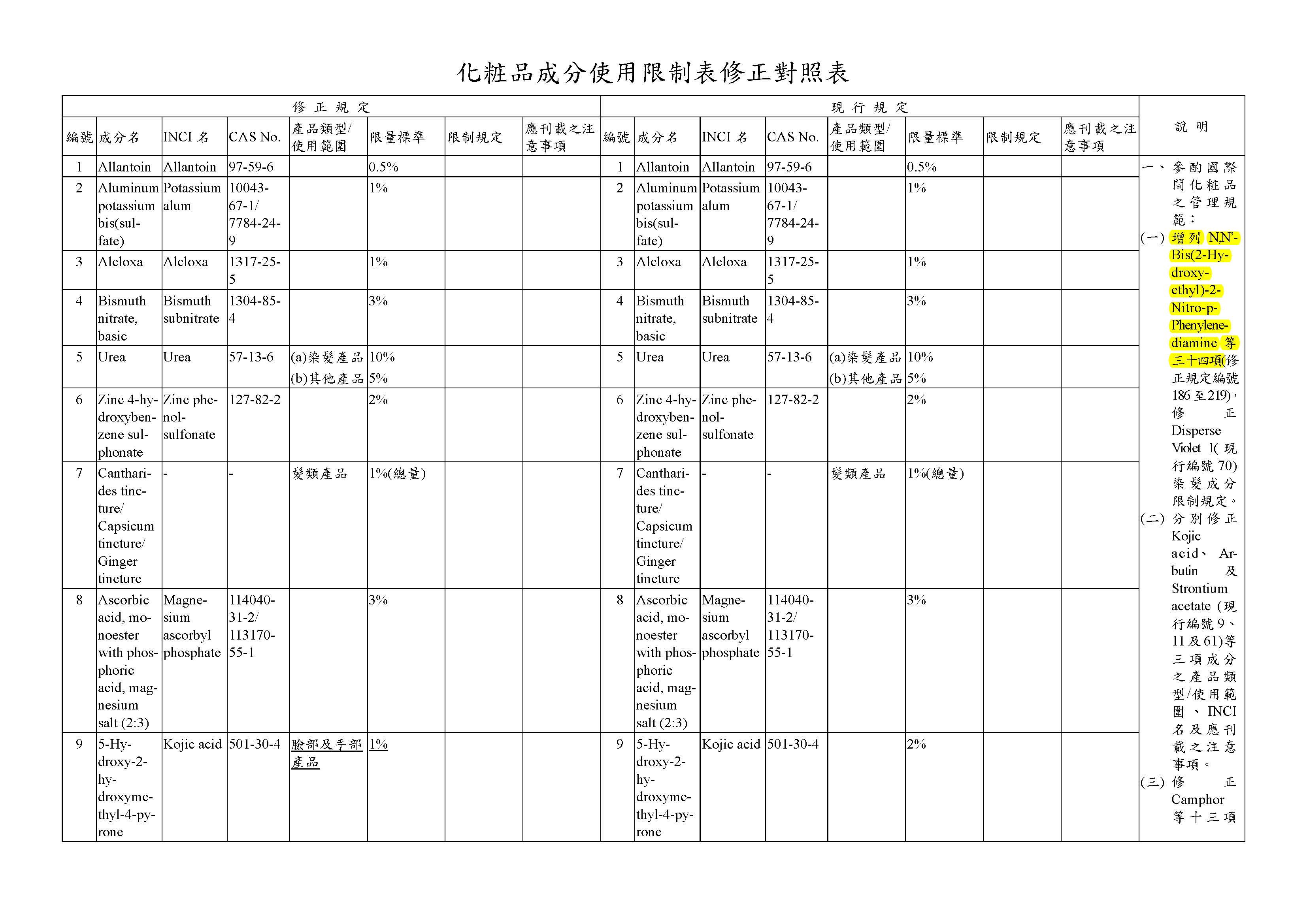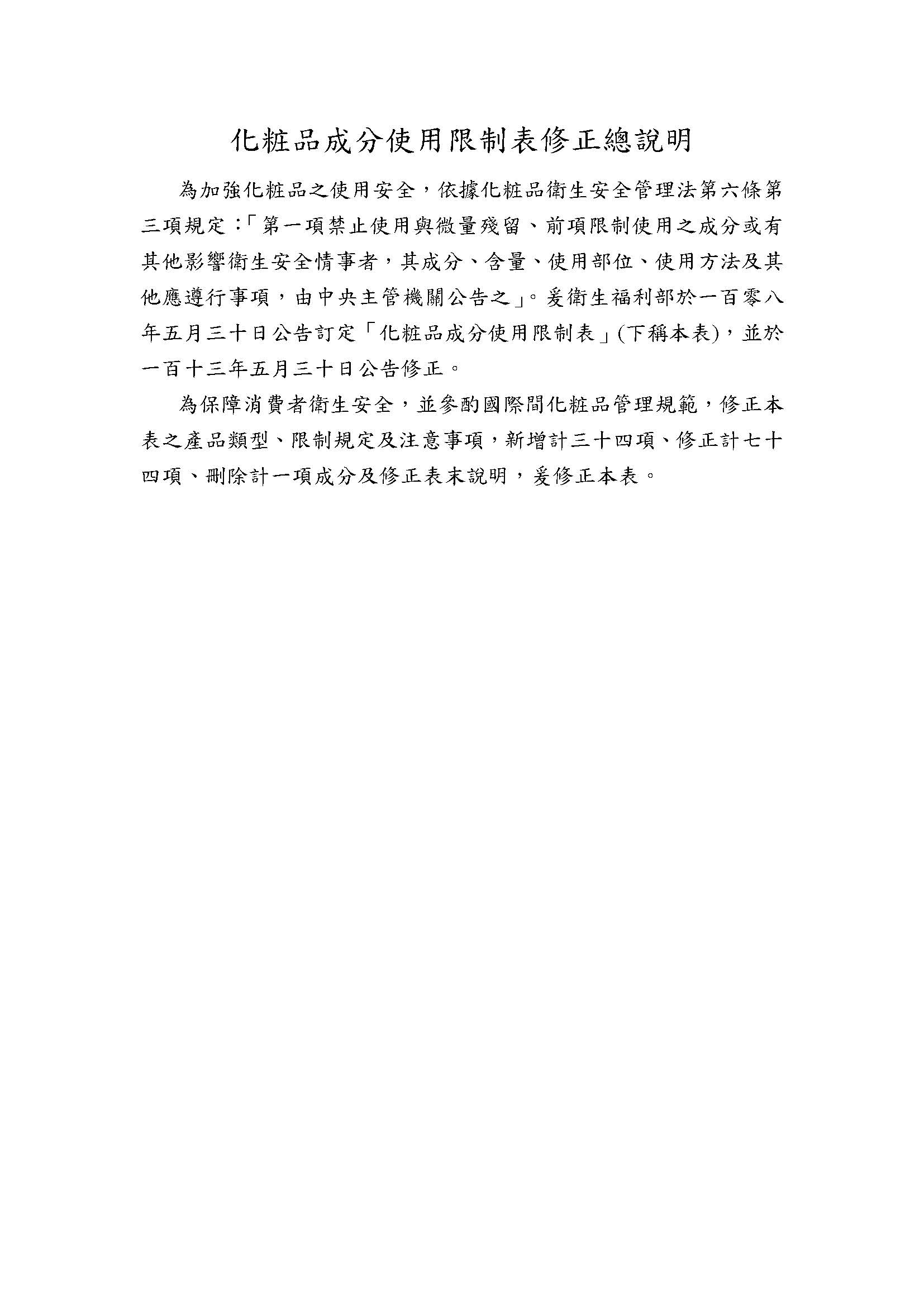 修正「化粧品成分使用限制表」,並自中華民國一百十六年十月一日生效